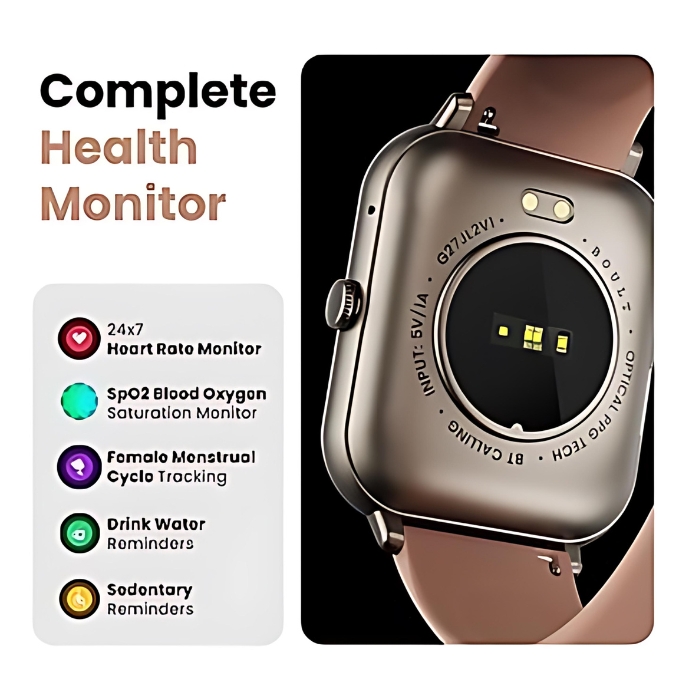 Health Monitoring 24/7 Heart-rate, SpOâ‚‚, sleep tracking, menstrual cycle, and stress reminders